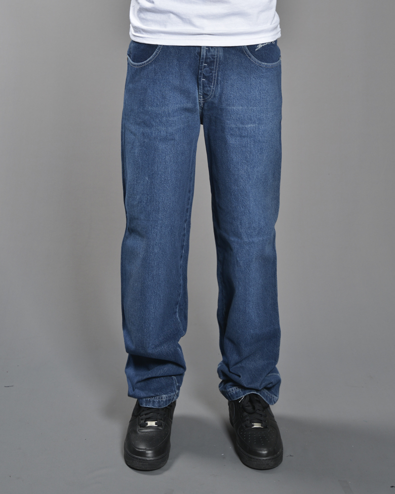 Bronx Clothing rento relaxed fit löysä farkku. Farkussa reilut taskut, jolloin puhelin ja lompakkokin mahtuu helposti taskuun.
