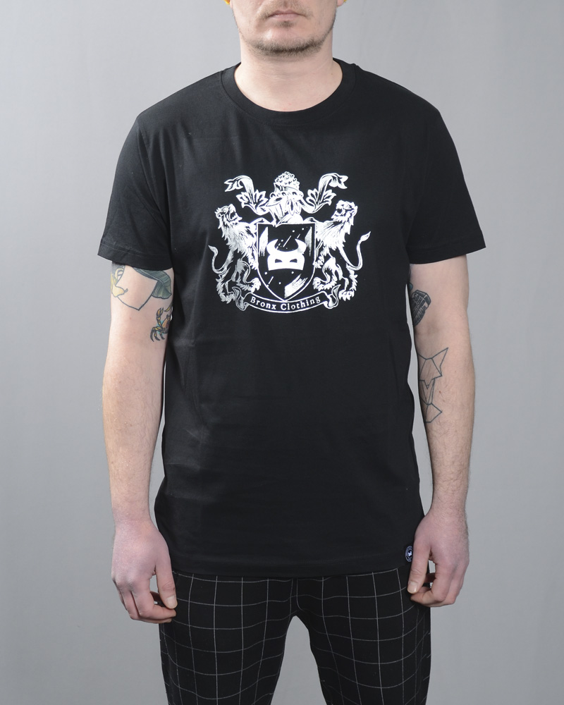 Bronx CLothing Lions t-paita. Hopeinen printti antaa hienosti kontrastia mustaan t-paitaan.