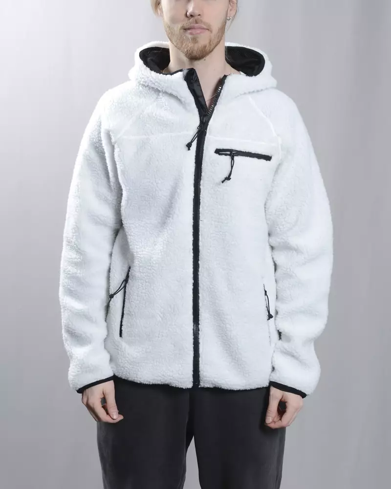 The Brandit Teddyfleece Worker Jacket BD5024 in white is a practical and warm teddyfleece jacket with a normal cut. Features an adjustable hood, front zip with chin guard, two side pockets, a zip chest pocket, and an inner pocket with Velcro closure.