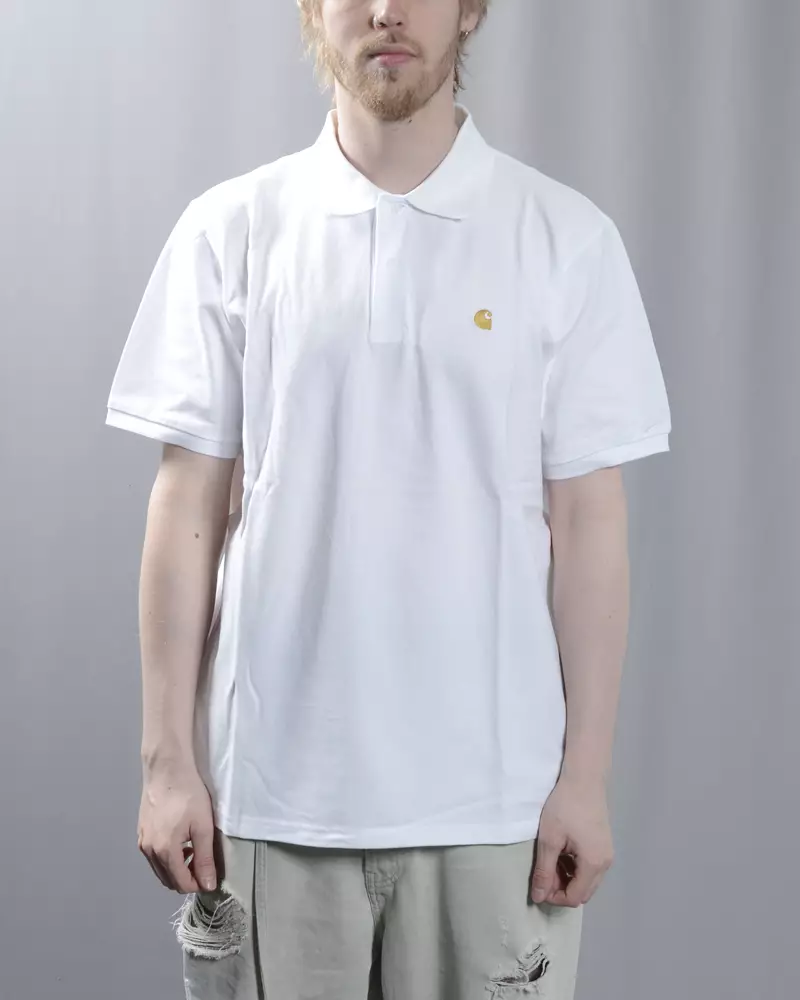 The signature golden embroidered Carhartt “C” logo on the chest adds a refined detail to the otherwise minimalist design. This clean white polo pairs effortlessly with jeans, chinos or shorts – a true wardrobe essential.