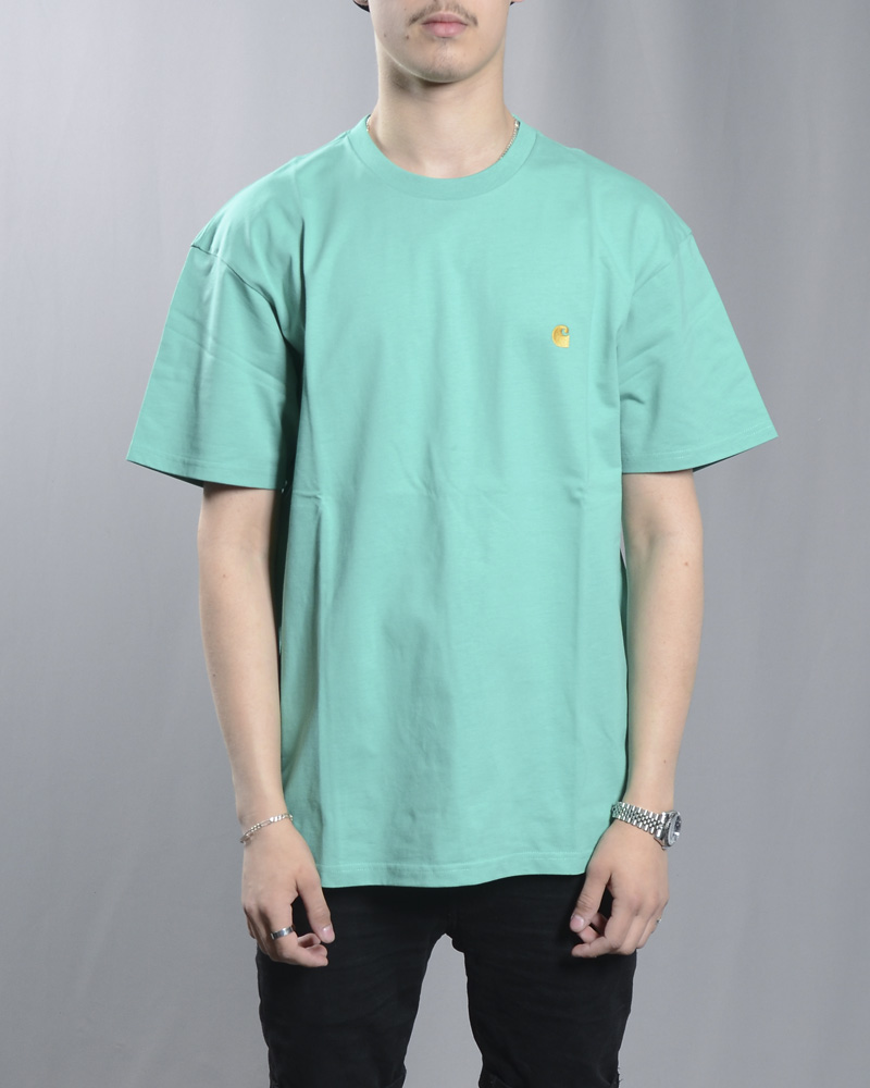 Carhartt WIP S/S Chase T-Paita. 100% puuvillaa. Kuvan malli 185/72 ja hänellä L-koko