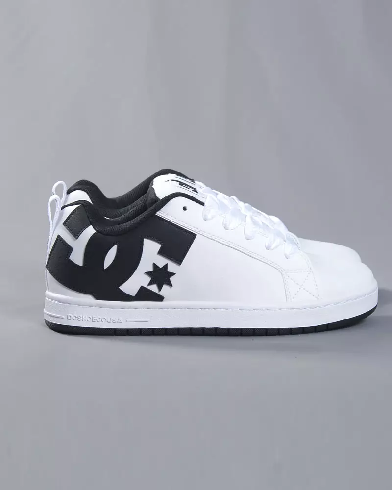 DC COURT GRAFFIK valkoinen tennari mustalla DC logolla. Ulkopinta aitoa nahkaa.