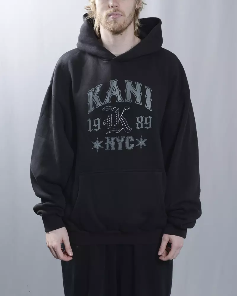 Karl Kani Western -huppari yhdistää legendaarisen 90-luvun hiphop-vibat ja modernin katumuodin tyylikkäästi. Mustassa pullover-hupparissa etupuolen iso printti ja applikoitu Karl Kani K -logo, viimeistelty hillitysti blingaavilla rhinestone-kivillä, tekevät hupparista heti silmiinpistävän ja urbaanin statement-palan.