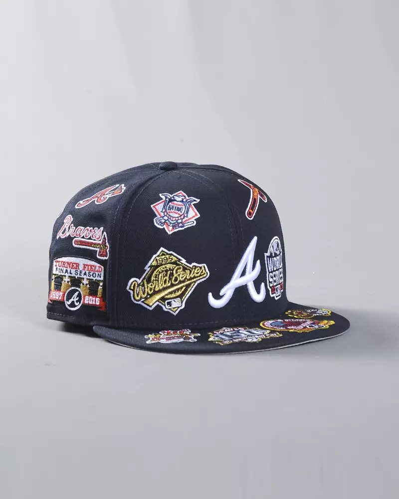 Classic 59FIFTY fitted crown with flat visor. The all over logo design adds bold style and makes the Braves design stand out in any streetwear look.