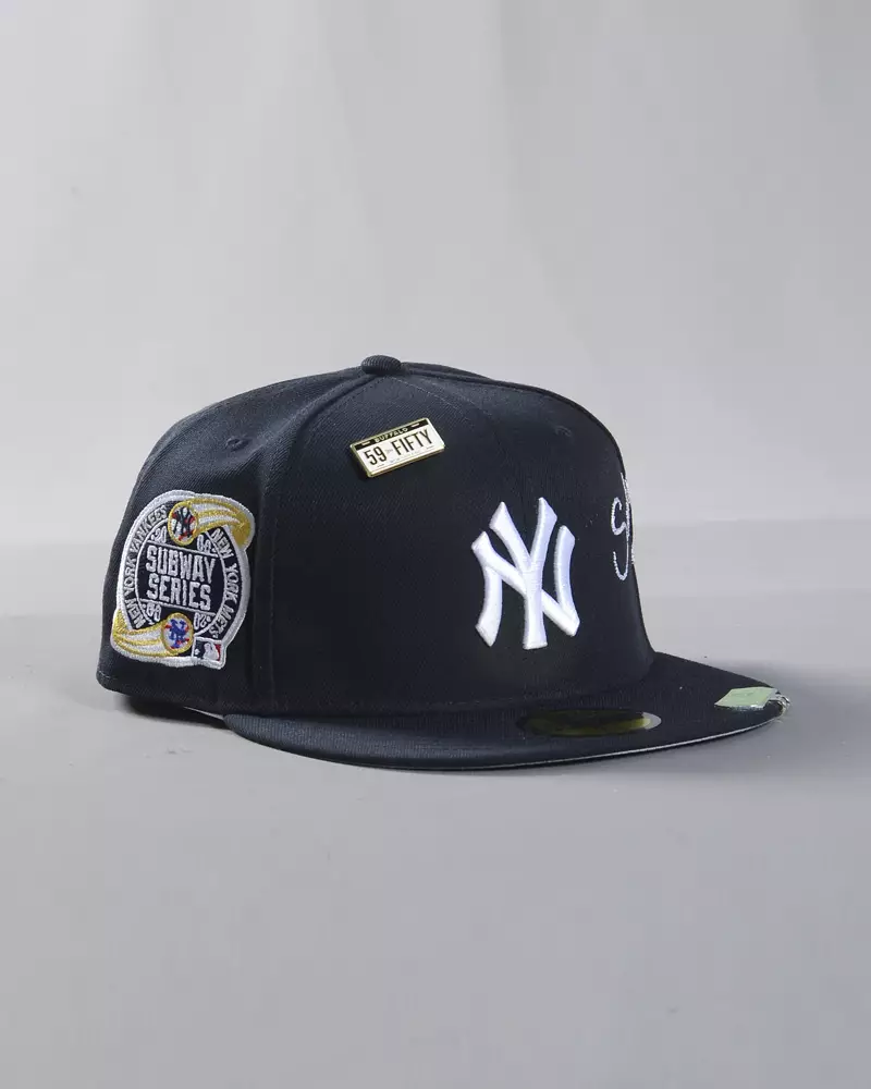 A navy New York Yankees fitted celebrating the legendary Subway Series rivalry. This New Era 59FIFTY stands out with heavy embroidery and an impressive level of premium detailing, going far beyond a standard fitted. The iconic Yankees front logo delivers a timeless look.