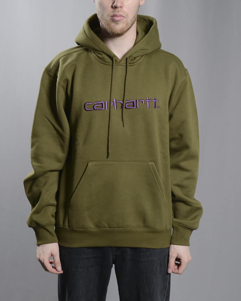 CARHARTT WIP Hooded Vihreä Huppari.58% puuvillaa/ 42% polyester.Kuvan malli 178/71 ja hänellä M-koko