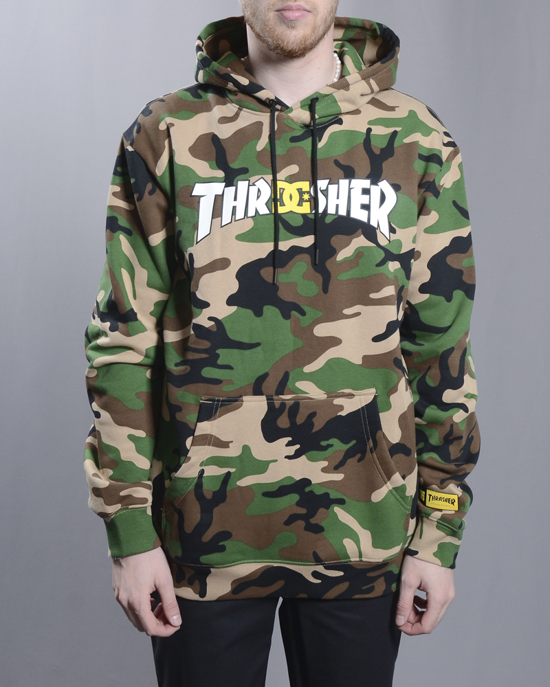 DC X Trasher Otlr Huppari. 80% puuvillaa/20% polyester. Kuvan malli 178/71 ja hänellä M-koko